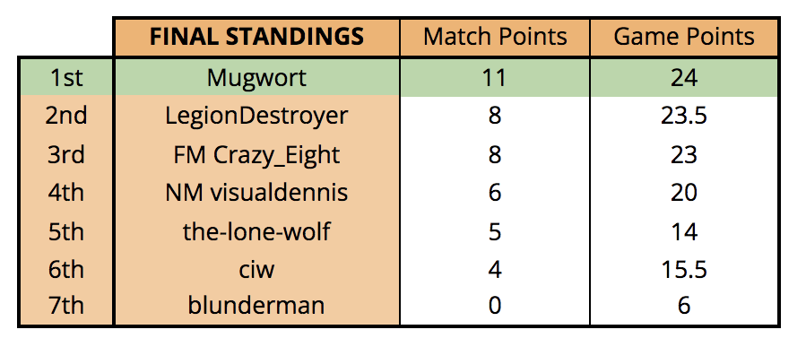 Thanks everyone for participating and completing all of their matches once again.