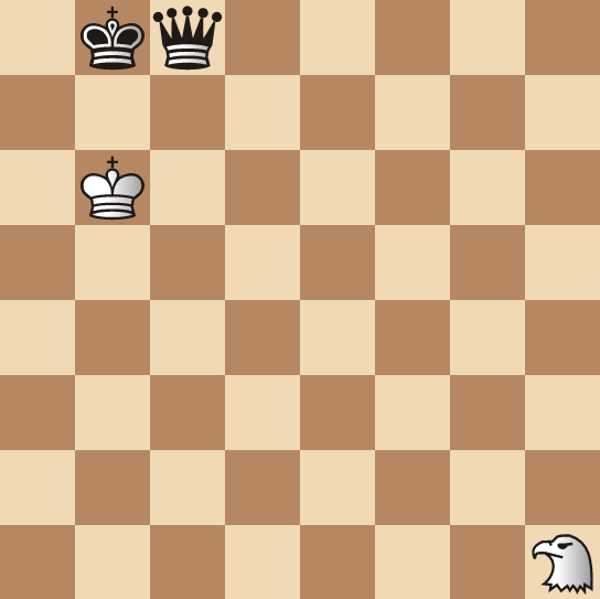 This series of ladder checks is quite typical for a Queen. If we replace the White Hawk with a White Queen in our diagram and also place a White pawn on the a5-square, White wins by: 1.Qh2+ Ka8 2.Qg2+ (without the White a5-pawn, White would win with 2.Qa2+ and Qa7 mate) 2…Kb8 3.Qg3+ Ka8 4.Qf3+ Ka8 5.Qf4+ Ka8 6.Qe4+ Kb8 7.Qe7! a quiet move that wins.