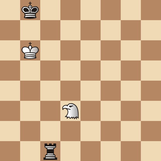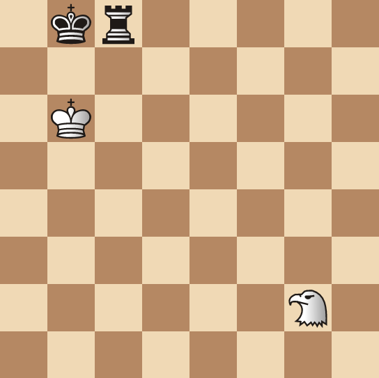 Let us investigate how the Hawk fares dueling a Rook. If from the diagrammed position we replace Black's Queen with a Black Rook, the win is the same.