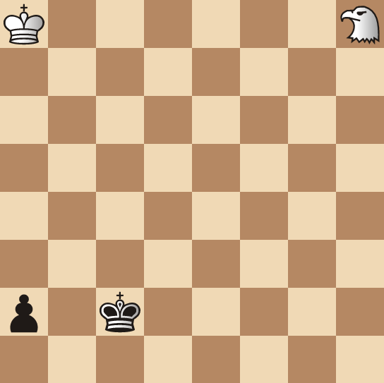 We know that passers on the seventh rank can cause problems for the Queen whereas the Elephant has no trouble against a passer. How about the Hawk? Give the matter some thought before reading on…