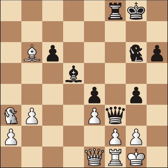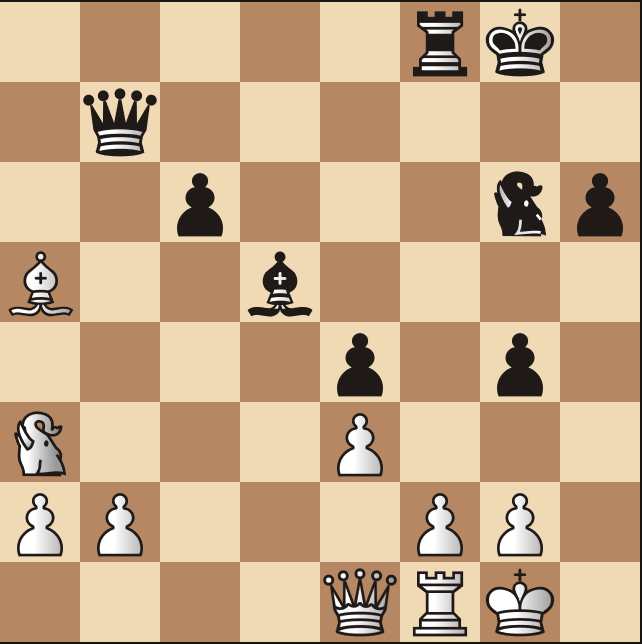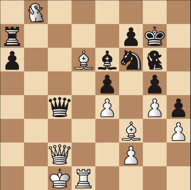 Instead, white tried 26. Hc2 c5 27. bxc5 Bxc5 28. Nf4 (see diagram below) but 28…Bc6 29. Kg1 Ne4 spelled the beginning of the end for white.