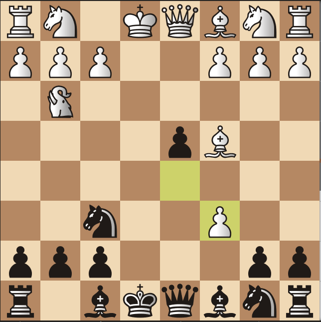 Another simple option was 6…Nxc6, reserving the Bb4 and 0-0/Ee8 combo for the next move.